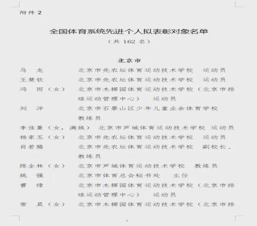 据国家体育总局人事司网站消息,昨天(10月27日),全国体育系统先进集体和先进个人评选表彰工作领导小组办公室发布“关于全国体育系统先进集体和先进个人拟表彰对象的公示”: