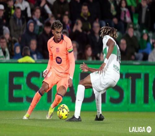 最终,总身价11.1亿的巴萨在三中门框+浪费8个机会的情况下,狂轰30脚,3-1战胜埃尔切,最近17场各项赛事16胜1负。本轮先赛的情况下,巴萨暂时领先皇马4分。